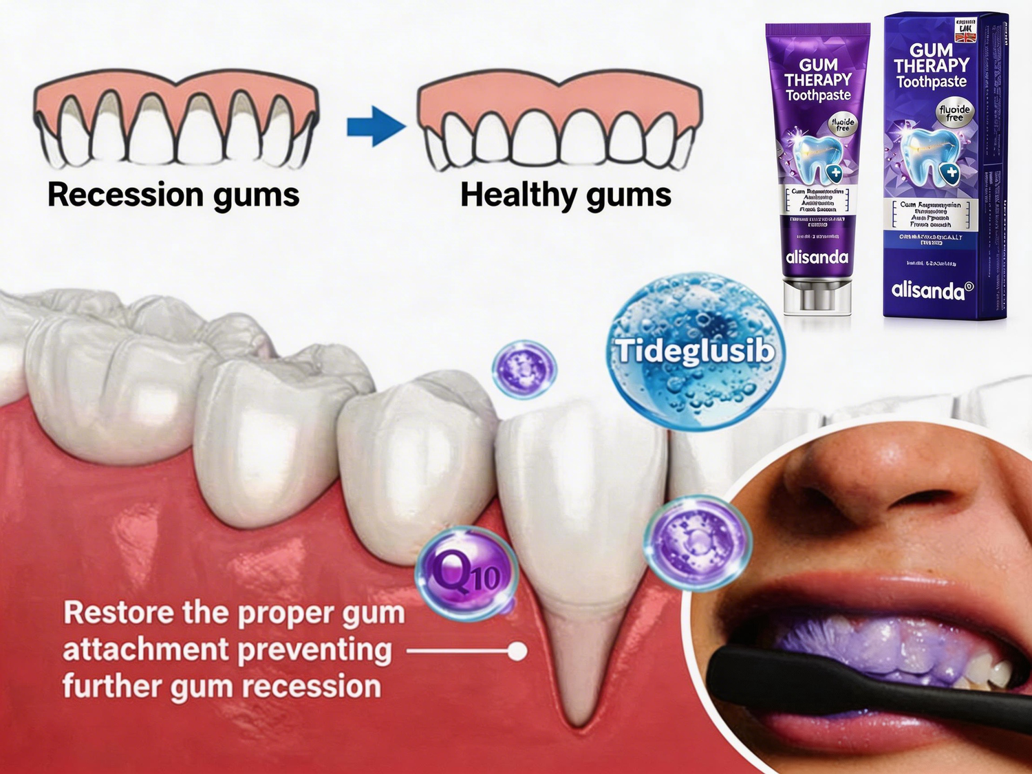 Thanks to a groundbreaking method for gum repair developed by researchers atUniversity of Manchester, Alisanda® contains tideglusib, which activates gum stem cells and stimulates tissue regeneration.